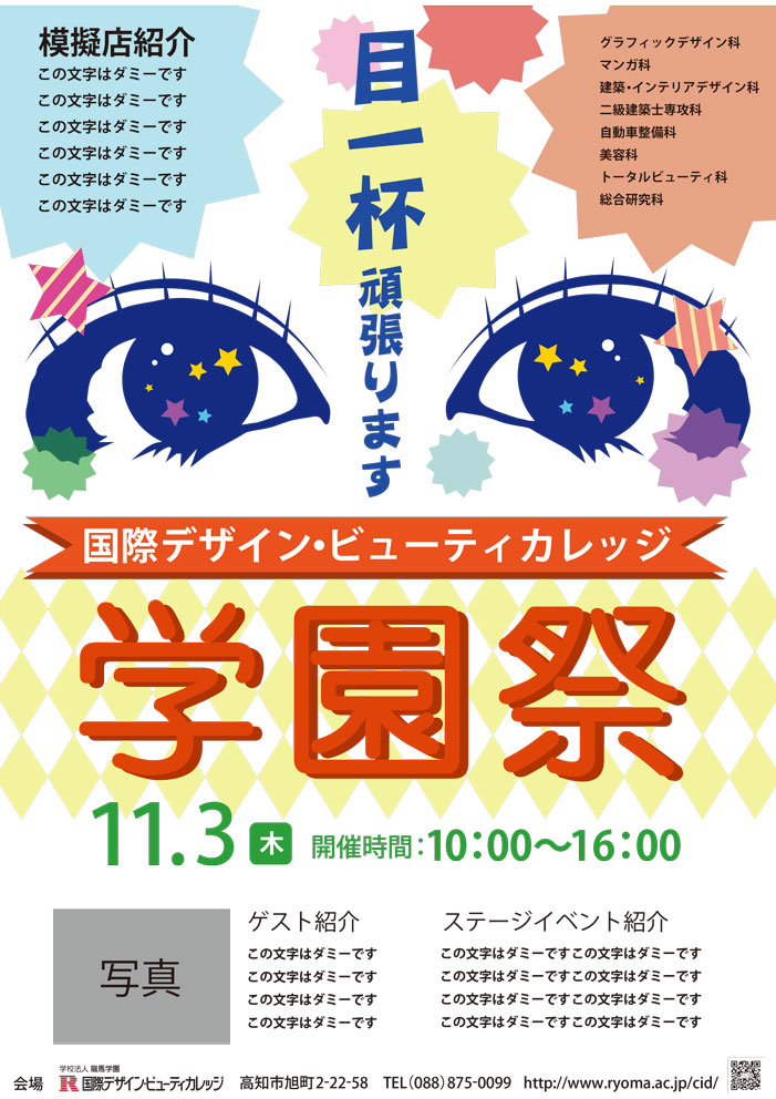 コンセプト:目と目一杯頑張るがかかっている。やる気を表現するために目はキラキラさせました。